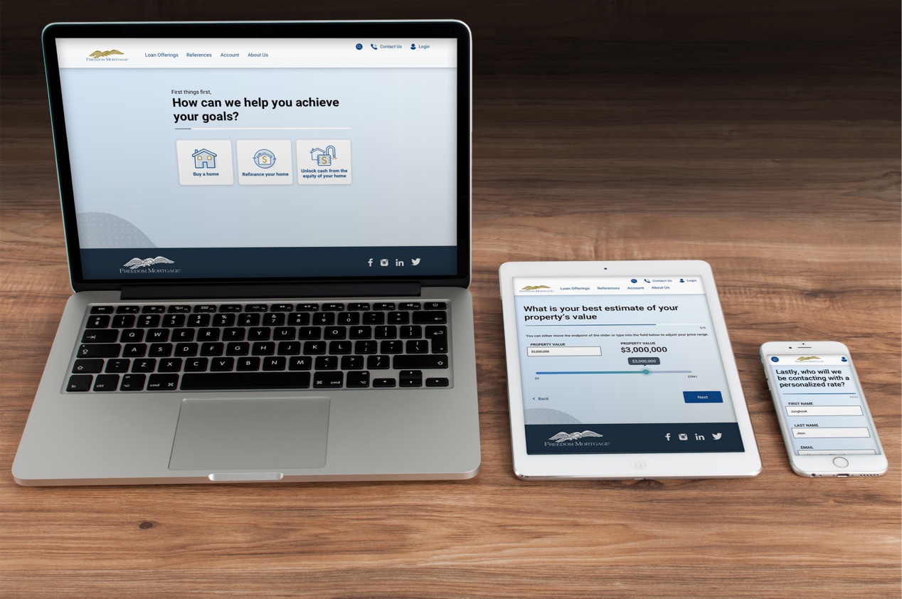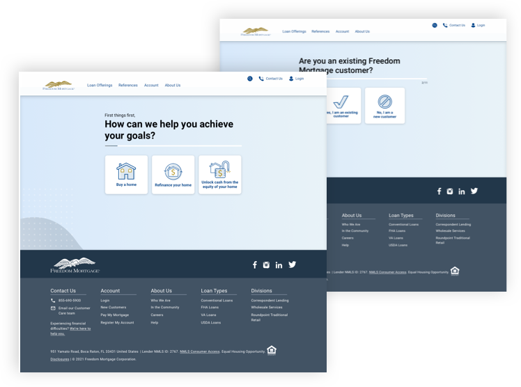 Freedom Mortgage doesn't have a fully online home-buying experience...yet! The first step in the current-state process to go from "user" to "client" is to engage by either calling or submitting a lead generation form to receive a call-back from a loan officer.