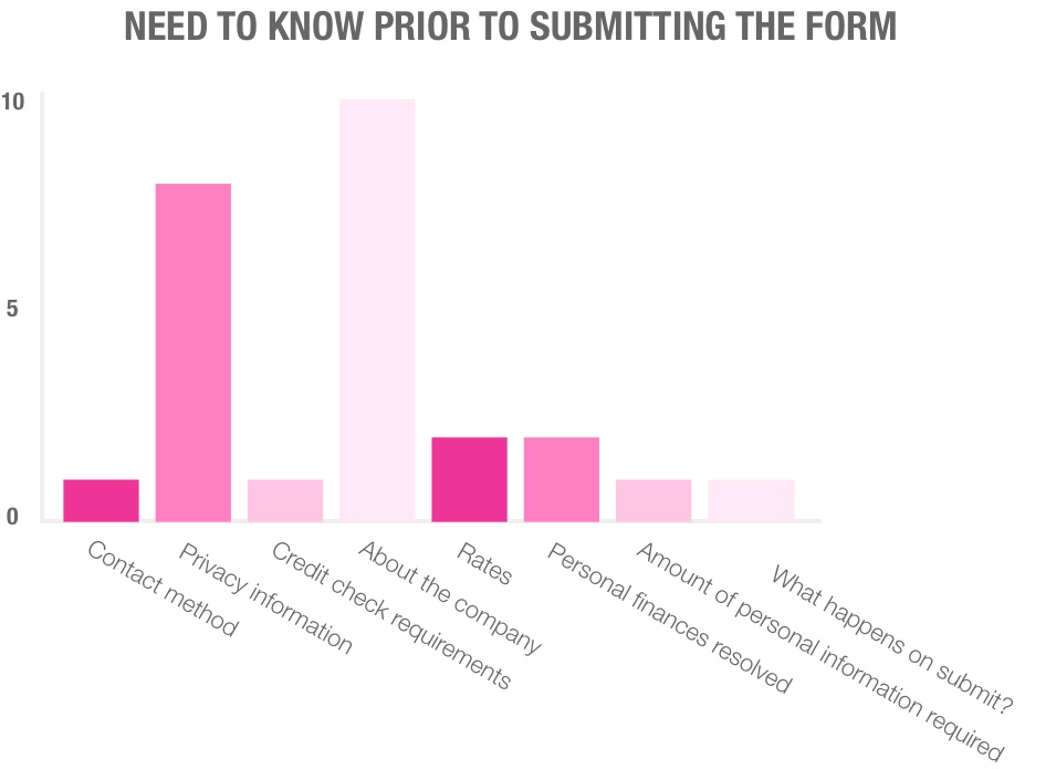 Further, exploratory research surrounding the path to purchase journey showed that the earlier in the journey users were, the less likely they were to expect to see the form at the times when they did. For example,