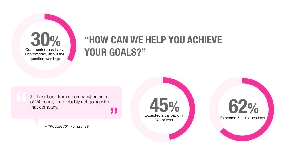 While some cited multiple examples of expected contact methods after submitting their forms, the vast majority both expected and preferred to receive an email with a rate quote.
